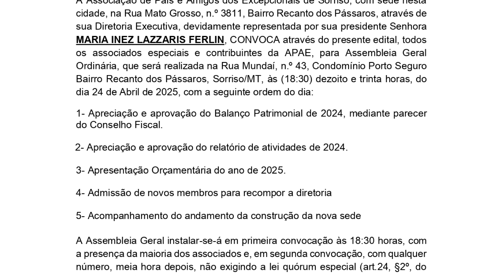 Edital convocação Assembleia Geral 24/04/25